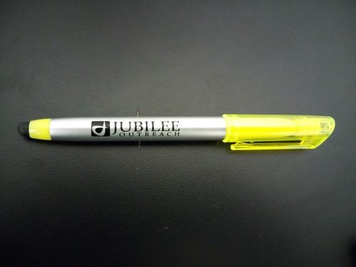 $2 Dual tip allows highlighting(Yellow) from one end and Stylus + Black Ink Writing from the other.