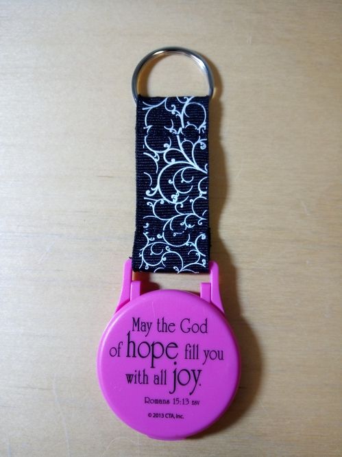$2 Pink key chain with mirror and scripture "May the God of hope fill you with all joy. Romans15:13RSV "